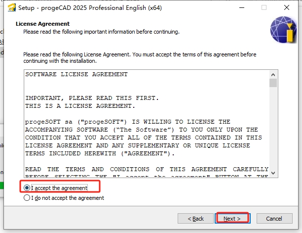 安装许可协议接受勾选,然后Next